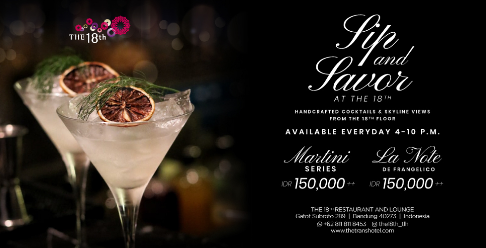 For more information and reservation, please call The 18th Restaurant & Lounge (+62) 022 8734 8888 or WhatsApp +62 811-811-8453 or email the.18@thetranshotel.com