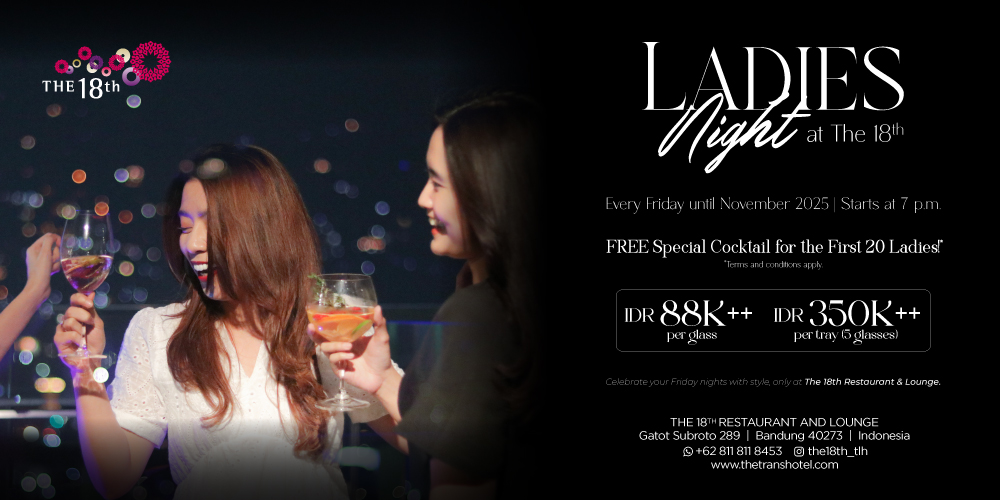 For more information and reservation, please call The 18th Restaurant & Lounge (+62) 022 8734 8888 or WhatsApp +62 811-811-8453 or email the.18@thetranshotel.com