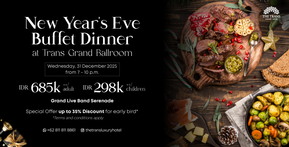Experience a truly grand New Year's Eve celebration at the magnificent Trans Grand Ballroom. Step into an atmosphere of joyous festivity and indulge in an extensive and exclusive buffet spread featuring more than 250 culinary options, encompassing international delicacies and local favorites expertly prepared by our culinary team. Ring in the New Year with sophistication and high energy, accompanied by the dynamic performance of a Live Band that will keep the celebration vibrant all night long, ensuring an unforgettable night of abundance and class.